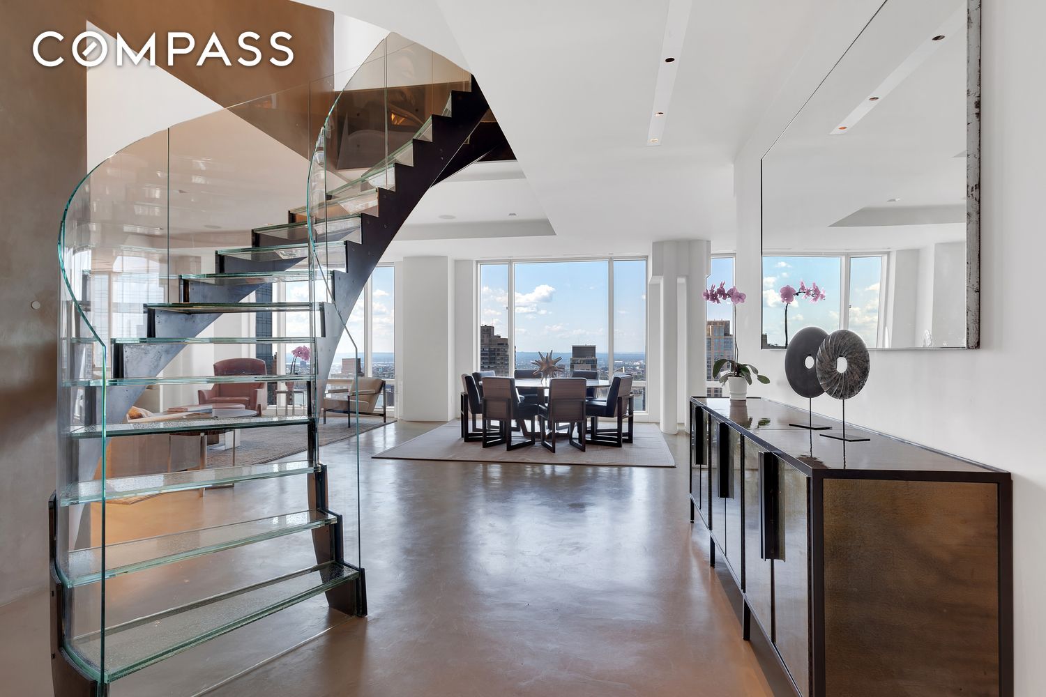 Experience the rare opportunity to own the only duplex apartment at One Central Park West. Situated on the 49th and 50th floors--the building's penthouse level--this exceptional residence spans 4,266 square feet, offering dramatic west-facing views of the city skyline, the shimmering Hudson River, the New Jersey horizon, and picture-perfect sunsets. The home has been meticulously renovated, blending a downtown loft aesthetic with the sophistication of Upper West Side luxury.