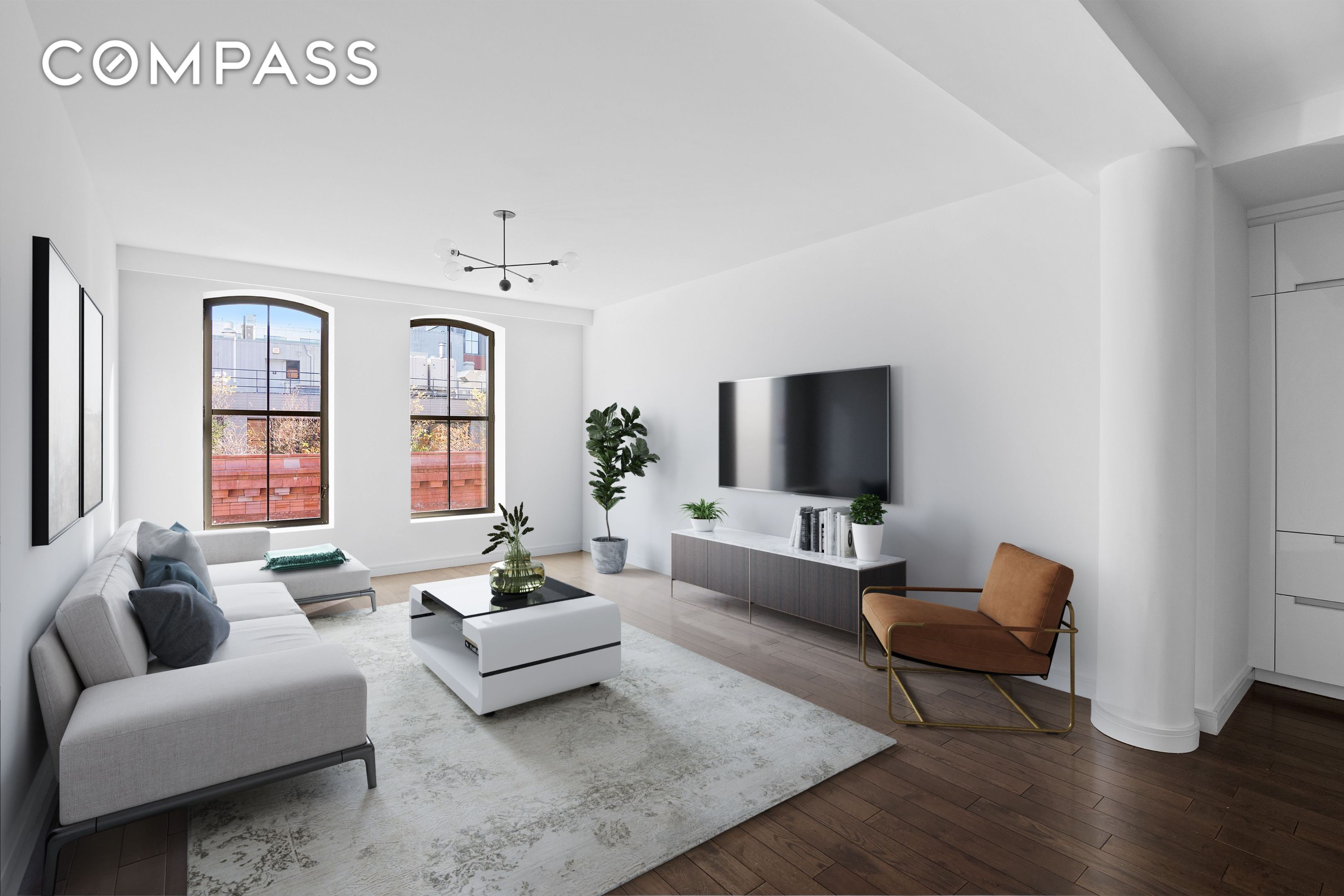 Sun-flooded, oversized 2 Bedroom 3 Bath with large den/home office in the heart of Tribeca. The generously proportioned oversized living room has an open chefs kitchen that is well thought out for everyday living and entertaining. The kitchen features custom Poggenpohl cabinetry, Subzero refrigerator, Bosch stove, range and dishwasher. This apartment boasts 10 ft ceilings and 5 in plank oak hardwood floors throughout, central heat and a/c and washer/dryer.