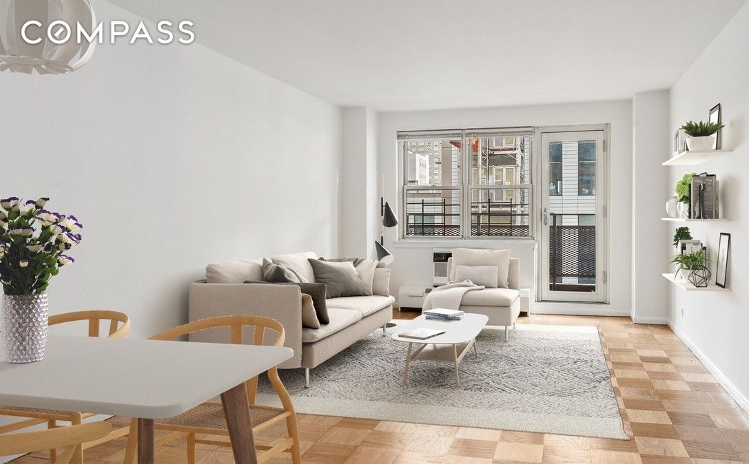17th Floor One Bedroom Co-op w/Private Balcony ready for its new owner. Separate dining area, 5 closets, eastern-facing, through-wall a/c. Needs work but a great opportunity for someone wanting to own a piece of Manhattan with all the amenities and affordable monthlies. 340 E 80th Street has a 24-hour doorman/attended lobby, on-site garage (separate fee), fitness center (separate fee), outdoor courtyard and onsite Resident Manager. Welcoming lobby and friendly staff. Crosstown bus, the Q and 6 trains are all convenient. 20% down required, no flip tax. Pied-a-terre use, pets up to 50 lbs & co-purchasing all allowed with board approval. Note that one of the photos has been virtually staged.