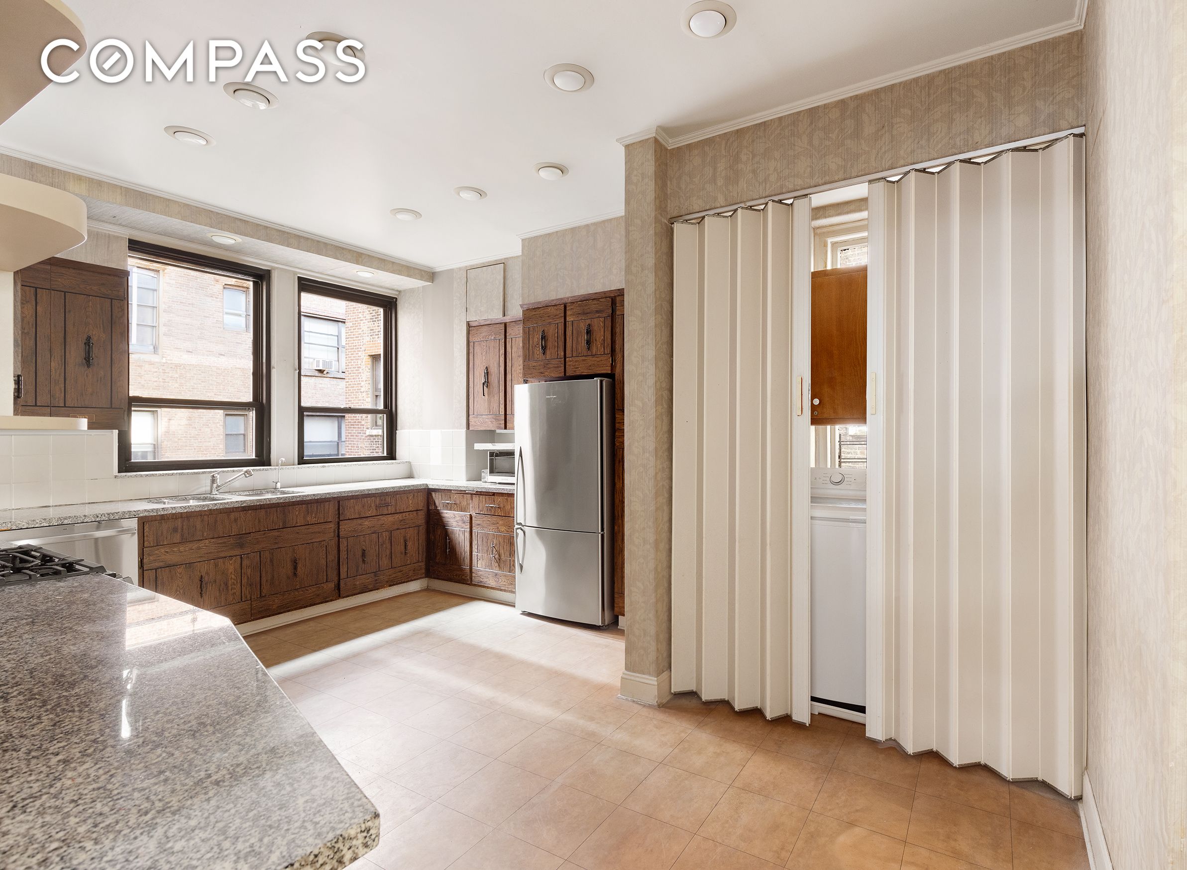 Spanning over 2,700 sq ft, this serene prewar residence boasts four exposures and oversized, triple-wide windows that illuminate the space in exceptional natural light. Offered for the first time in over 50 years, this rarely available home features picturesque views of the area's historic architecture and the lush, tree-lined street below. The interior radiates timeless character, showcased through soaring 10-ft beamed ceilings, original herringbone floors, intricate moldings, wainscoting, and 2 distinguished decorative fireplaces with ornate mantels.